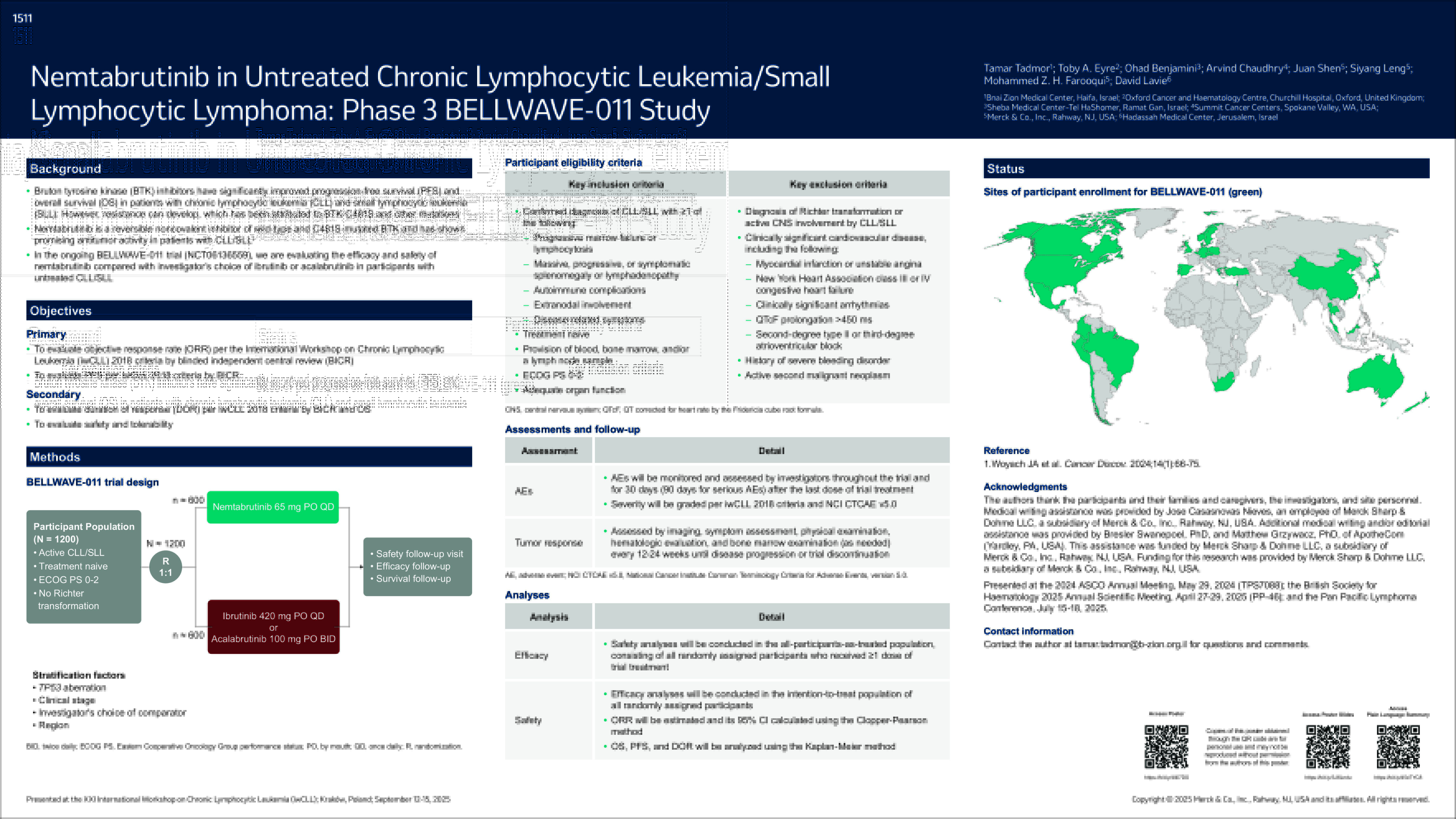 Nemtabrutinib in Untreated Chronic Lymphocytic Leukemia/Small Lymphocytic Lymphoma: Phase 3 BELLWAVE-011 Study