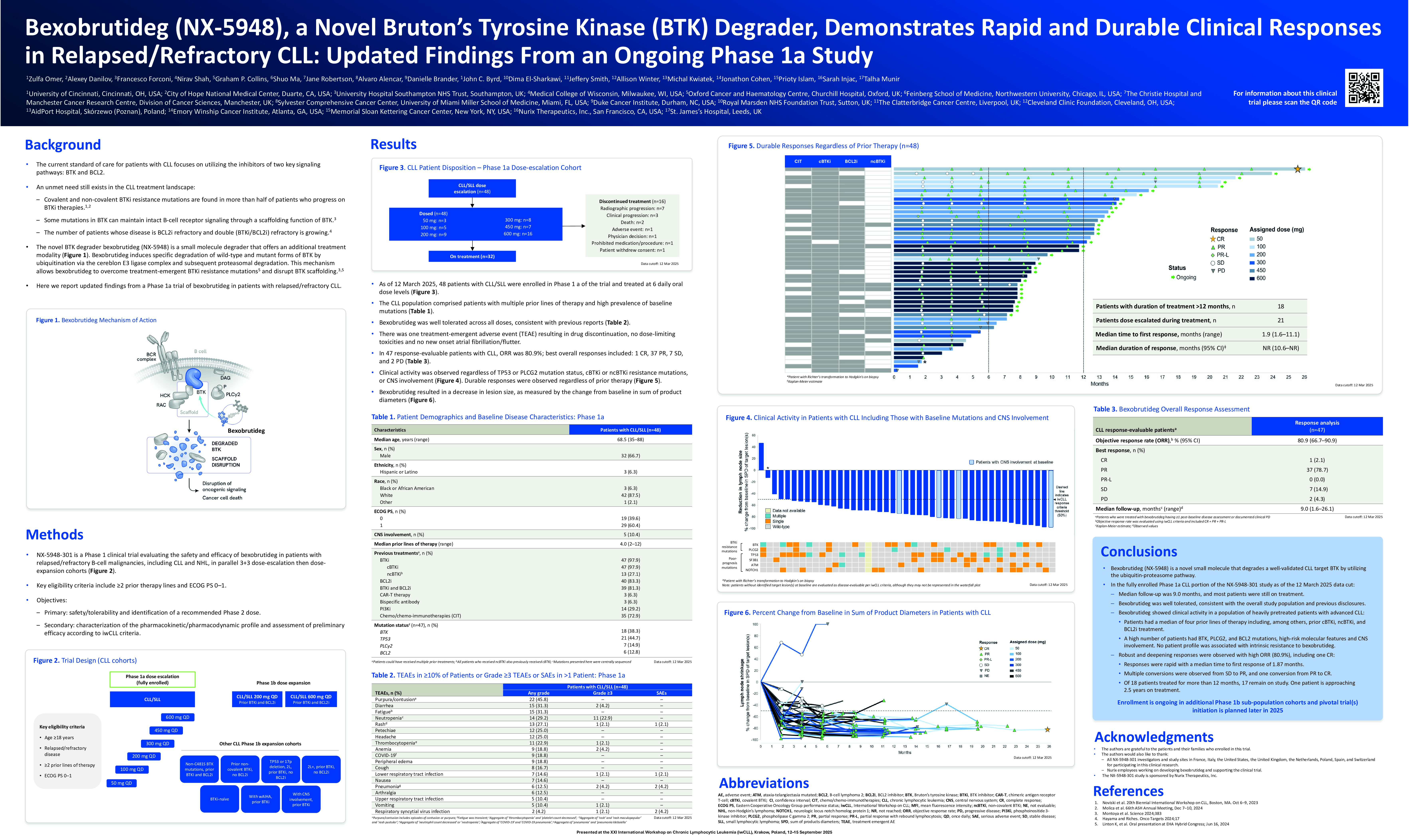 Bexobrutideg (NX-5948), a novel Bruton’s tyrosine kinase (BTK) degrader, demonstrates rapid and durable clinical responses in relapsed/refractory CLL: updated findings from an ongoing Phase 1a study
