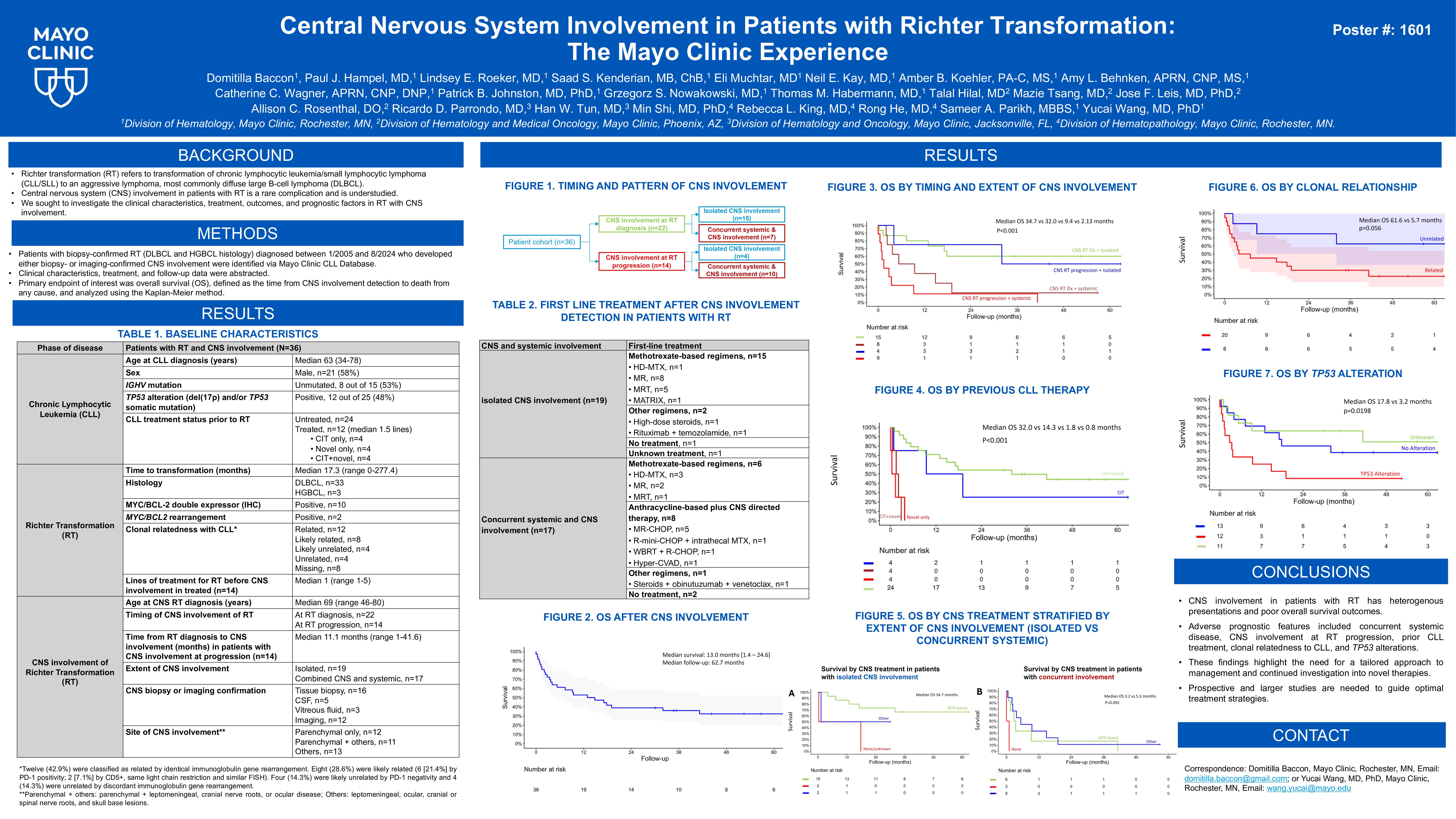 Domitilla Baccon, Paul J. Hampel, MD, Lindsey E. Roeker, MD, Saad S. Kenderian, MB, ChB, Eli Muchtar, MD Neil E. Kay, MD, Amber B. Koehler, PA-C, MS, Amy L. Behnken, APRN, CNP, MS, Catherine C. Wagner, APRN, CNP, DNP, Patrick B. Johnston, MD, PhD, Grzegorz S. Nowakowski, MD, Thomas M. Habermann, MD, Talal Hilal, MD2 Mazie Tsang, MD, Jose F. Leis, MD, PhD, Allison C. Rosenthal, DO, Ricardo D. Parrondo, MD, Han W. Tun, MD, Min Shi, MD, PhD, Rebecca L. King, MD, Rong He, MD, Sameer A. Parikh, MBBS, Yucai Wang, MD, PhD.