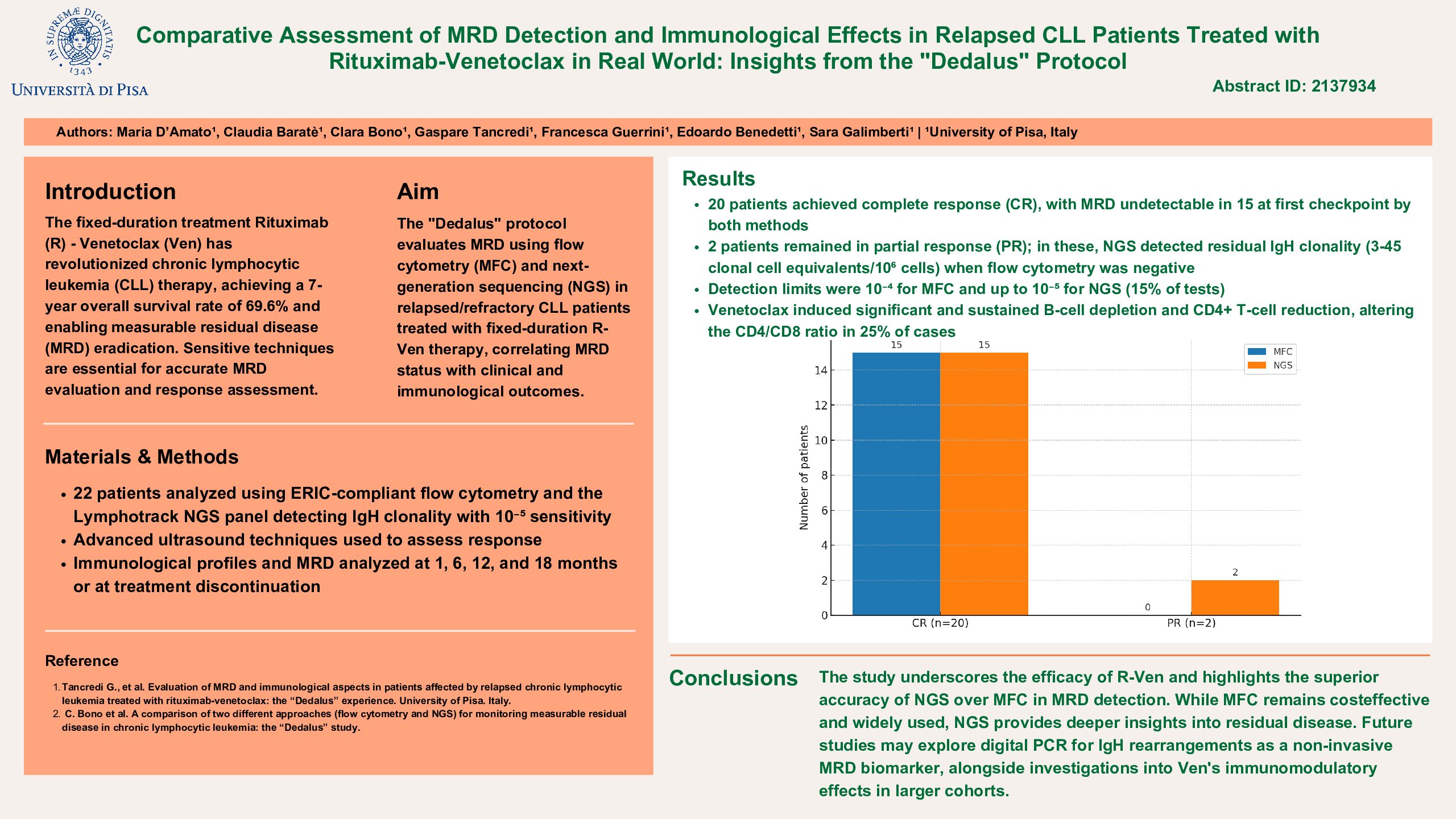 The study underscores the efficacy of R-Ven and highlights the superior accuracy of NGS over MFC in MRD detection. While MFC remains cost-effective and widely used, NGS provides deeper insights into residual disease. Future studies may explore digital PCR for IgH rearrangements as a non-invasive MRD biomarker, alongside investigations into Ven’s immunomodulatory effects in larger cohorts.