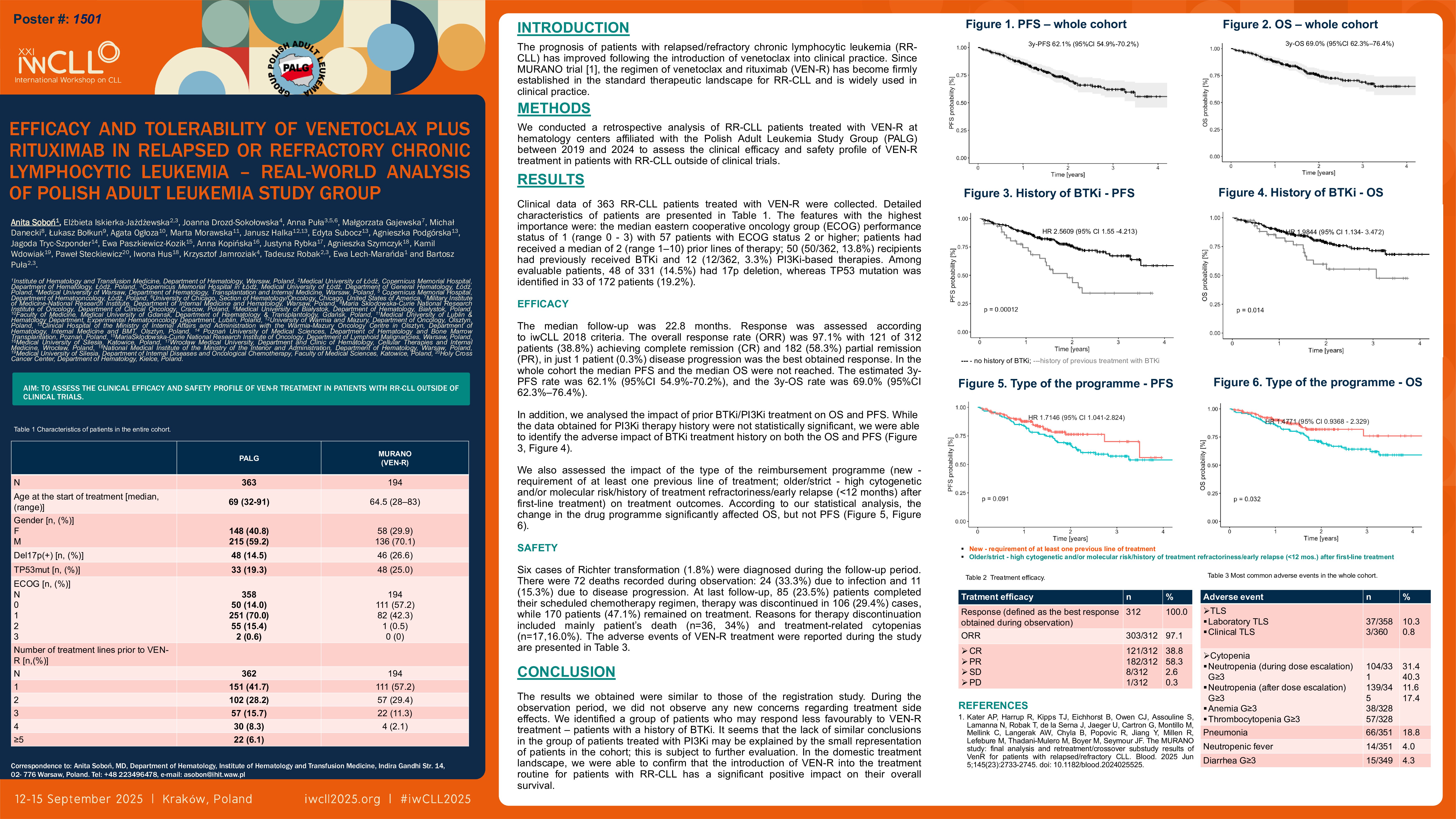 We conducted a retrospective analysis of RR-CLL patients treated with VEN-R at hematology centers affiliated with the Polish Adult Leukemia Study Group (PALG) between 2019 and 2024.