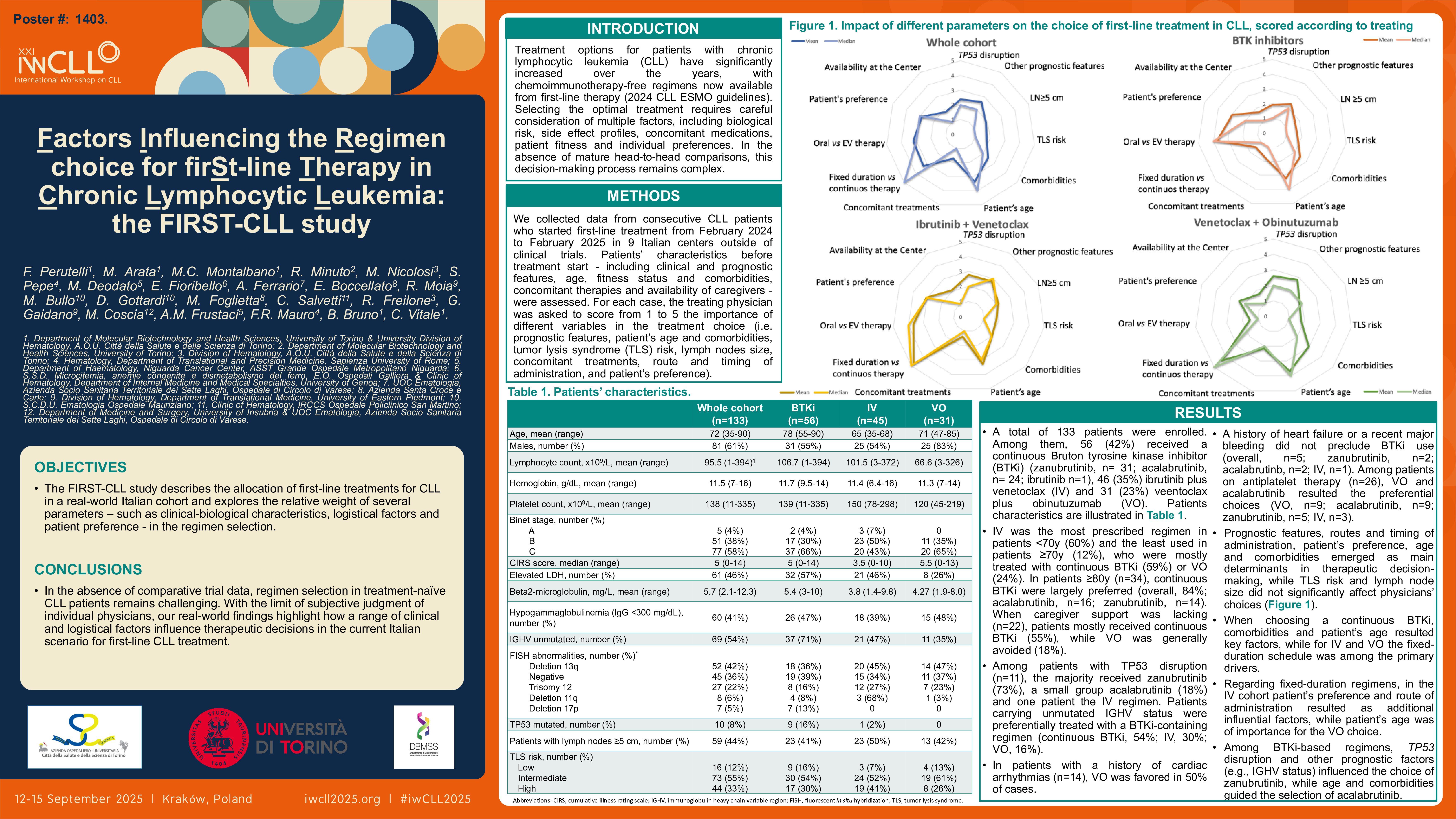 The FIRST-CLL study describes the allocation of first-line treatments for CLL in a real-world Italian cohort and explores the relative weight of several parameters – such as clinical-biological characteristics, logistical factors and patient preference – in the regimen selection.