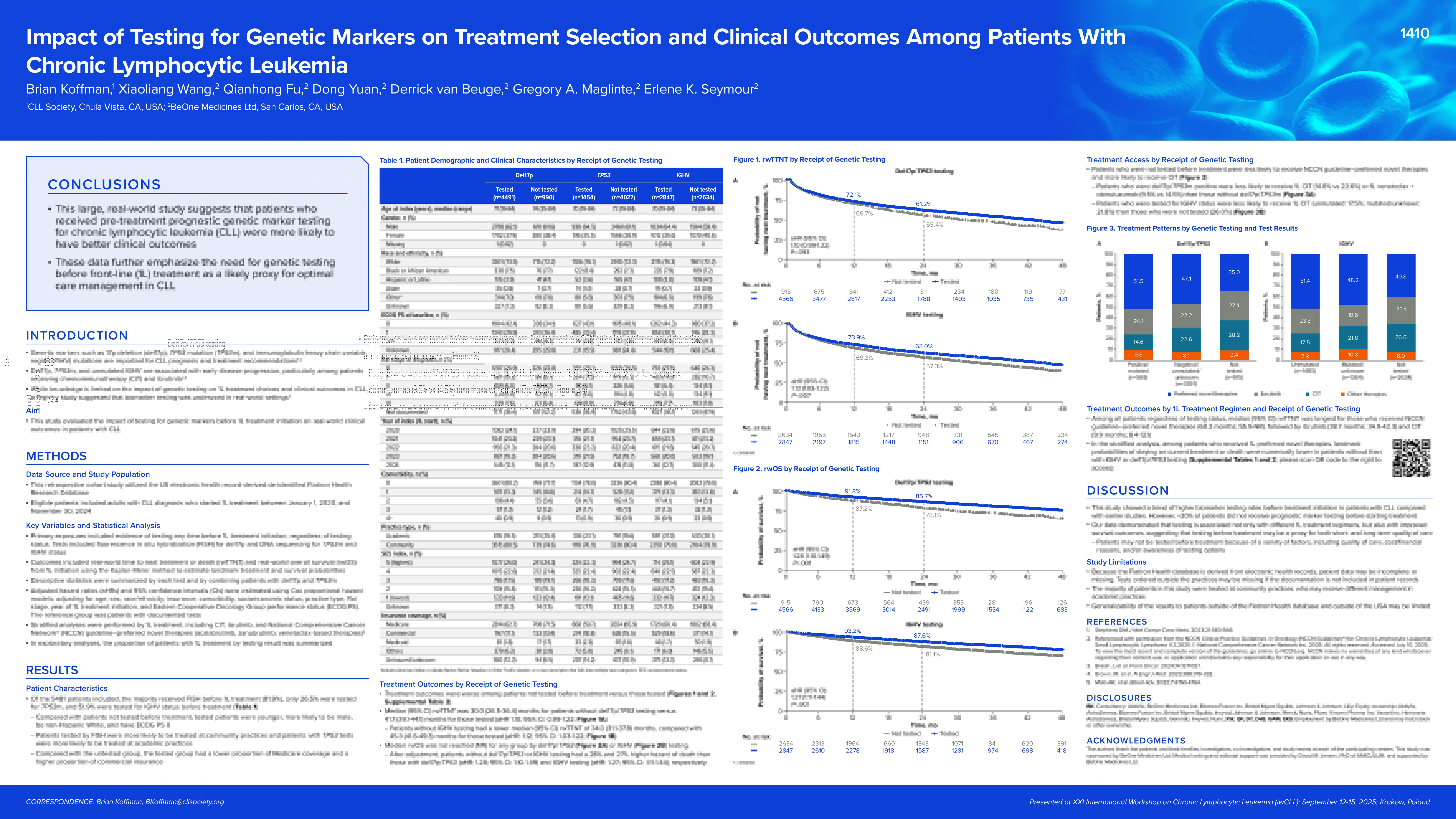 This large, real-world study suggests patients who received pre-treatment prognostic genetic marker testing for CLL were more likely to have better clinical outcomes, further emphasizing the need for testing before 1L treatment as a likely proxy for optimal care management in CLL.