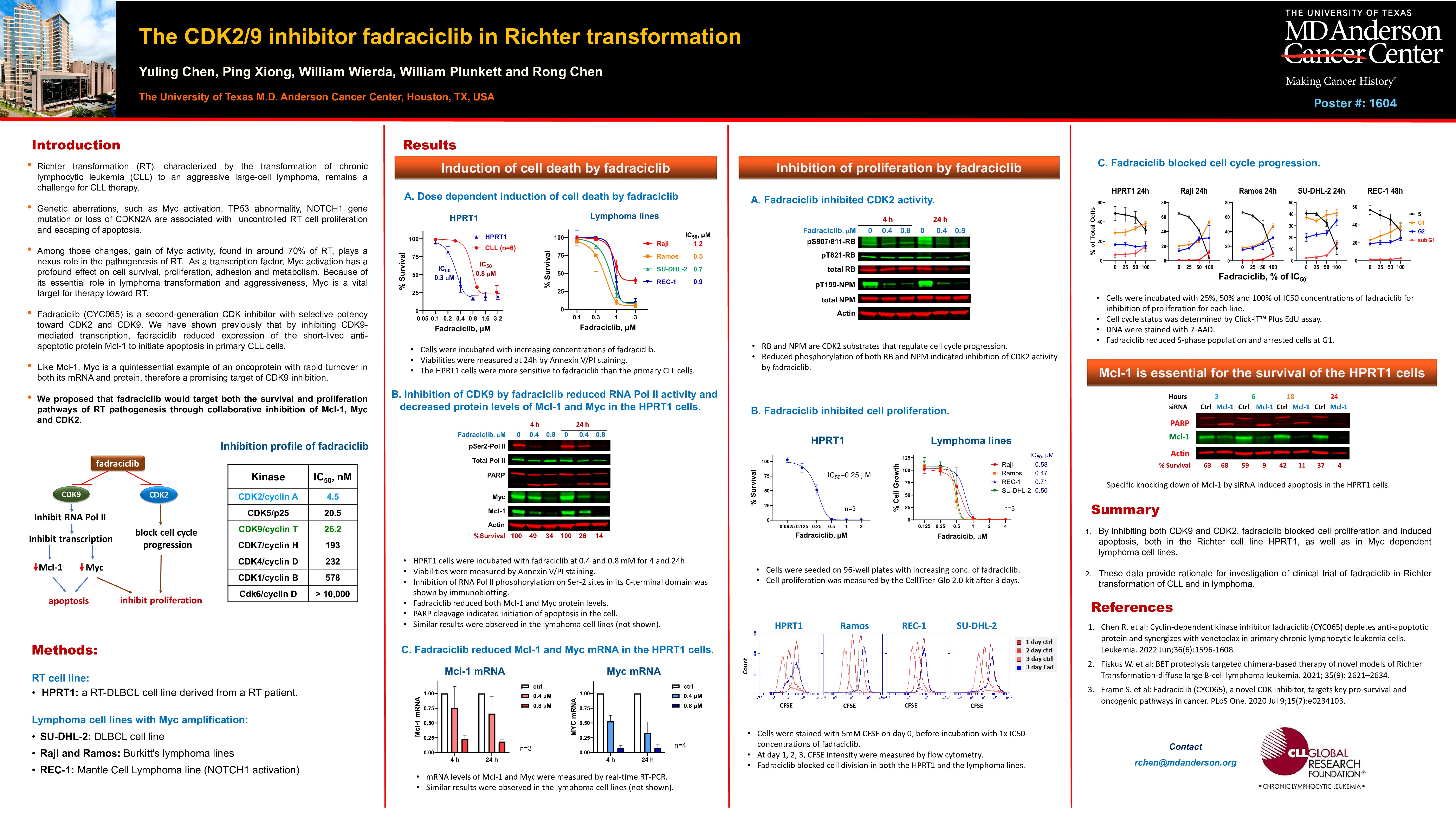 In summary, our results demonstrate that fadraciclib is active in RT and Myc-driven lymphoma cell lines by targeting both survival and proliferation pathways, supporting its further clinical evaluation in patients with Richter transformation.