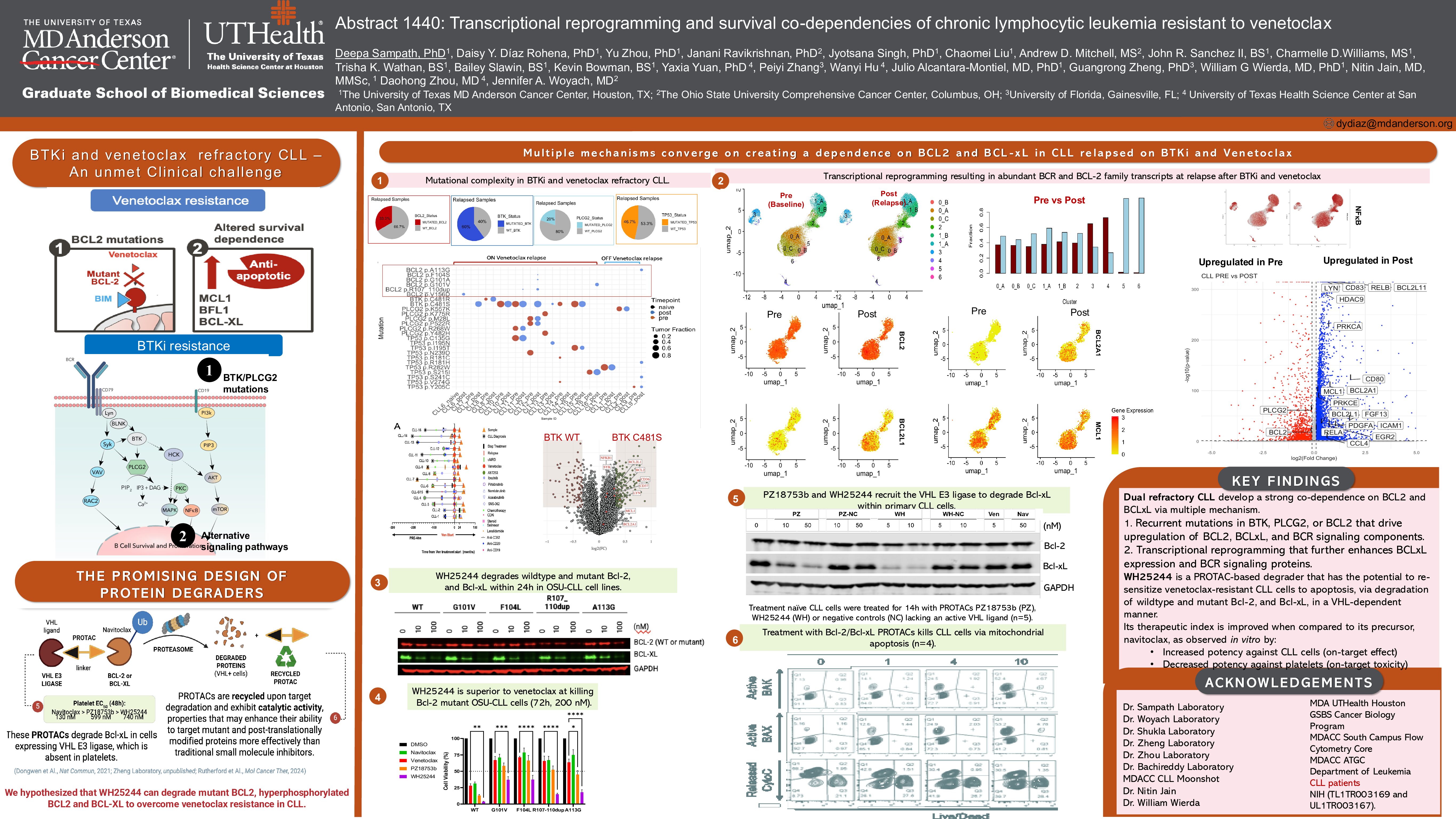 Deepa Sampath, PhD, Daisy Y. Díaz Rohena, PhD, Yu Zhou, PhD, Janani Ravikrishnan, PhD, Jyotsana Singh, PhD, Chaomei Liu, Andrew D. Mitchell, MS, John R. Sanchez II, BS, Charmelle D.Williams, MS, Trisha K. Wathan, BS1, Bailey Slawin, BS1, Kevin Bowman, BS, Yaxia Yuan, PhD , Peiyi Zhang, Wanyi Hu, Julio Alcantara-Montiel, MD, PhD, Guangrong Zheng, PhD, William G Wierda, MD, PhD1, Nitin Jain, MD, MMSc, Daohong Zhou, MD, Jennifer A. Woyach, MD.